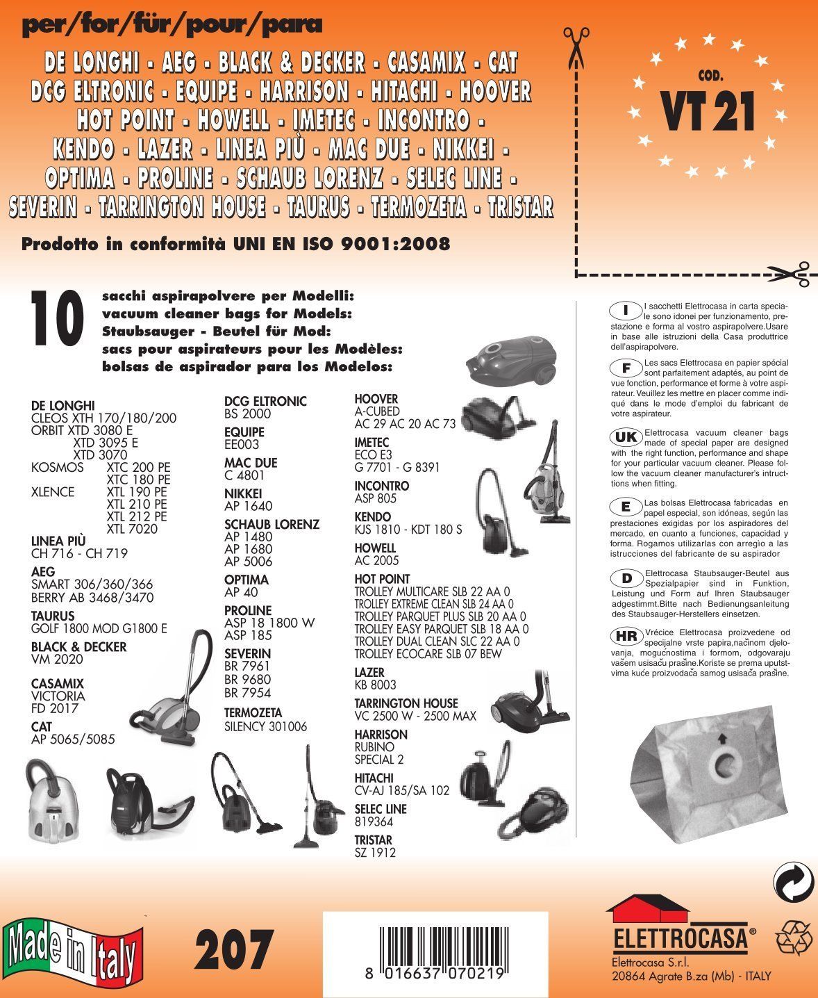 DISPONIBILI IN DEPOSITO I SACCHETTI DI RICAMBIO PER ALTRE MARCHE E MODELLO DI ASPIRAPOLVERE