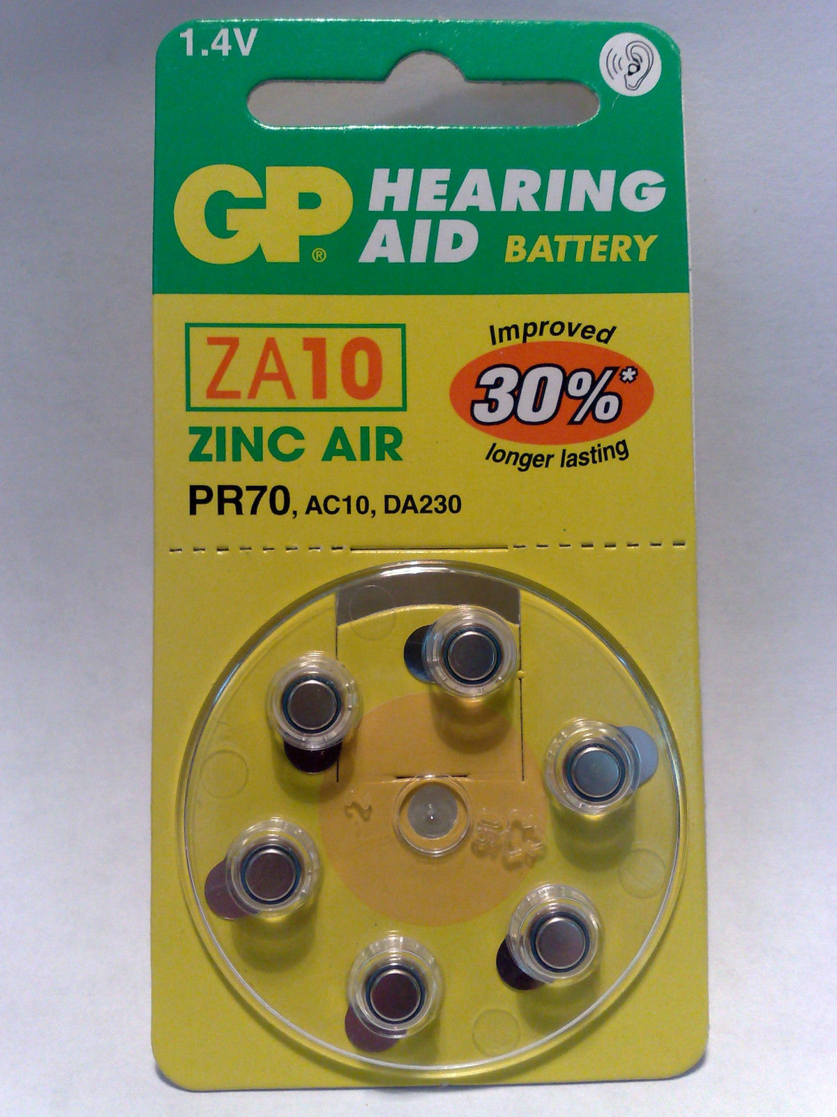 CONFEZIONE N° 6 BATTERIE ZA 10 PER APPARECCHI ACUSTICI GP BATTERIES ZINC AIR