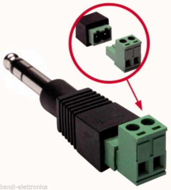 ADATTATORE DA SPINA 6,3mm STEREO A MORSETTO 2 POLI A VITE PER CAVI UTP O DI ALIMENTAZIONE