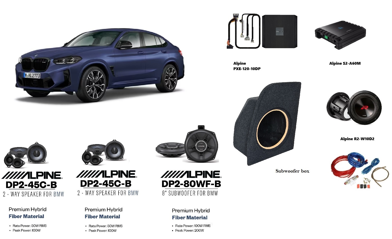 Sistema audio premium composto da altoparlanti per le porte anteriori, subwoofer sotto i sedili e processore audio a 12 canali progettato per i modelli BMW Serie X4 con base RAM