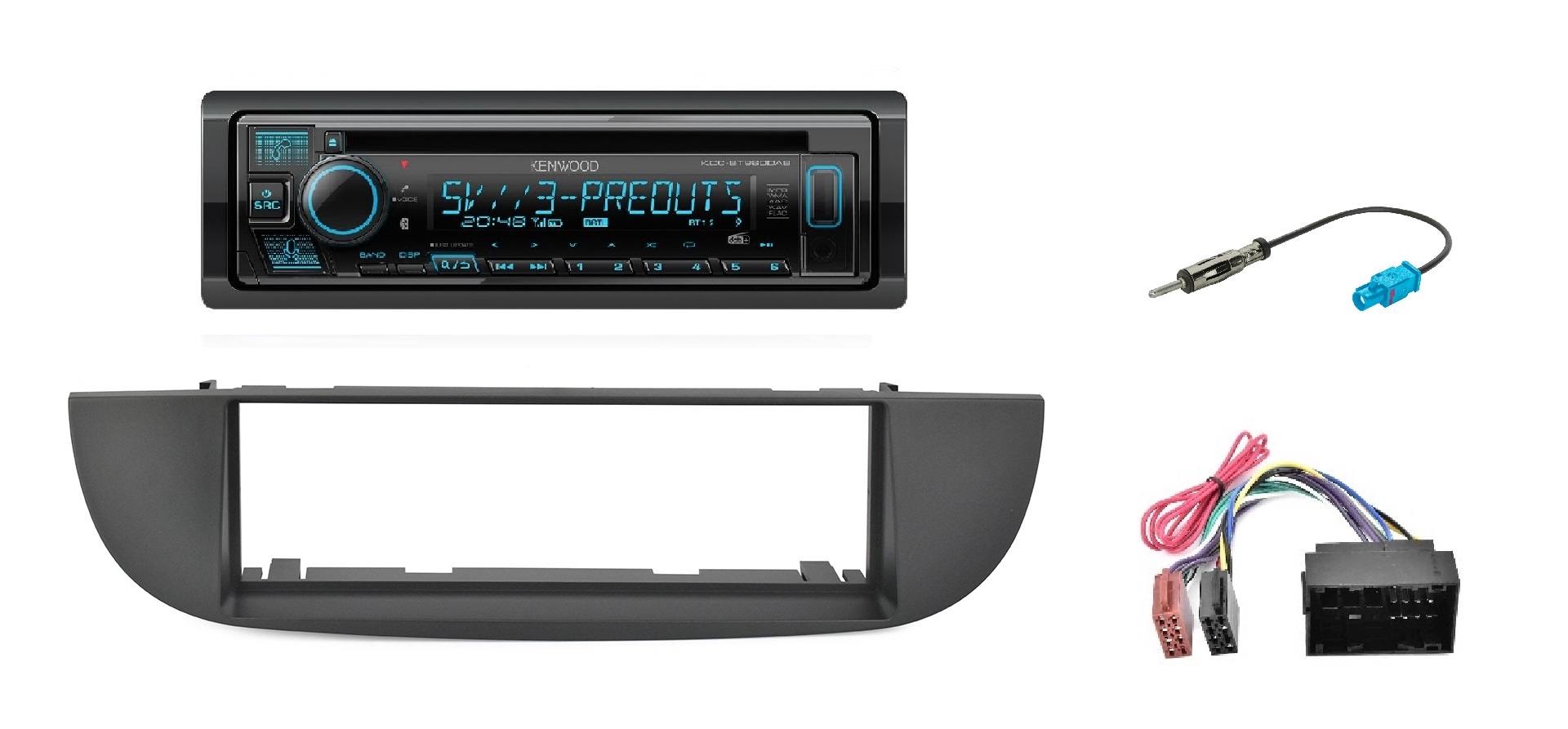 Autoradio Kenwood per Fiat 500 DAB+ con lettore CD, USB e SD Card, frontalino estraibile e Bluetooth