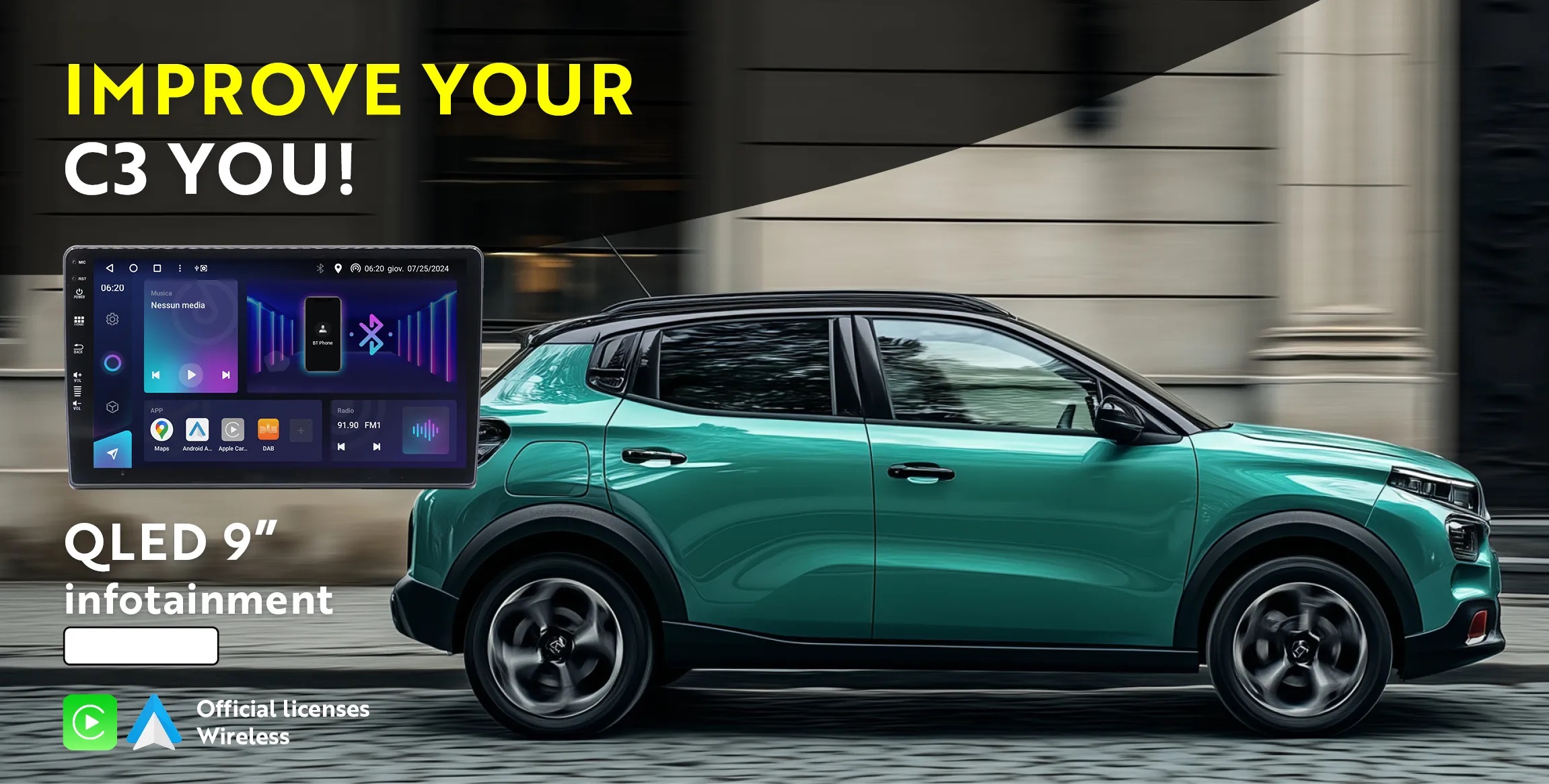 Mediastation con monitor QLED 9” e adattatore specifico per la sostituzione della Smartphone Station su CITROËN C3 allestimento YOU.
