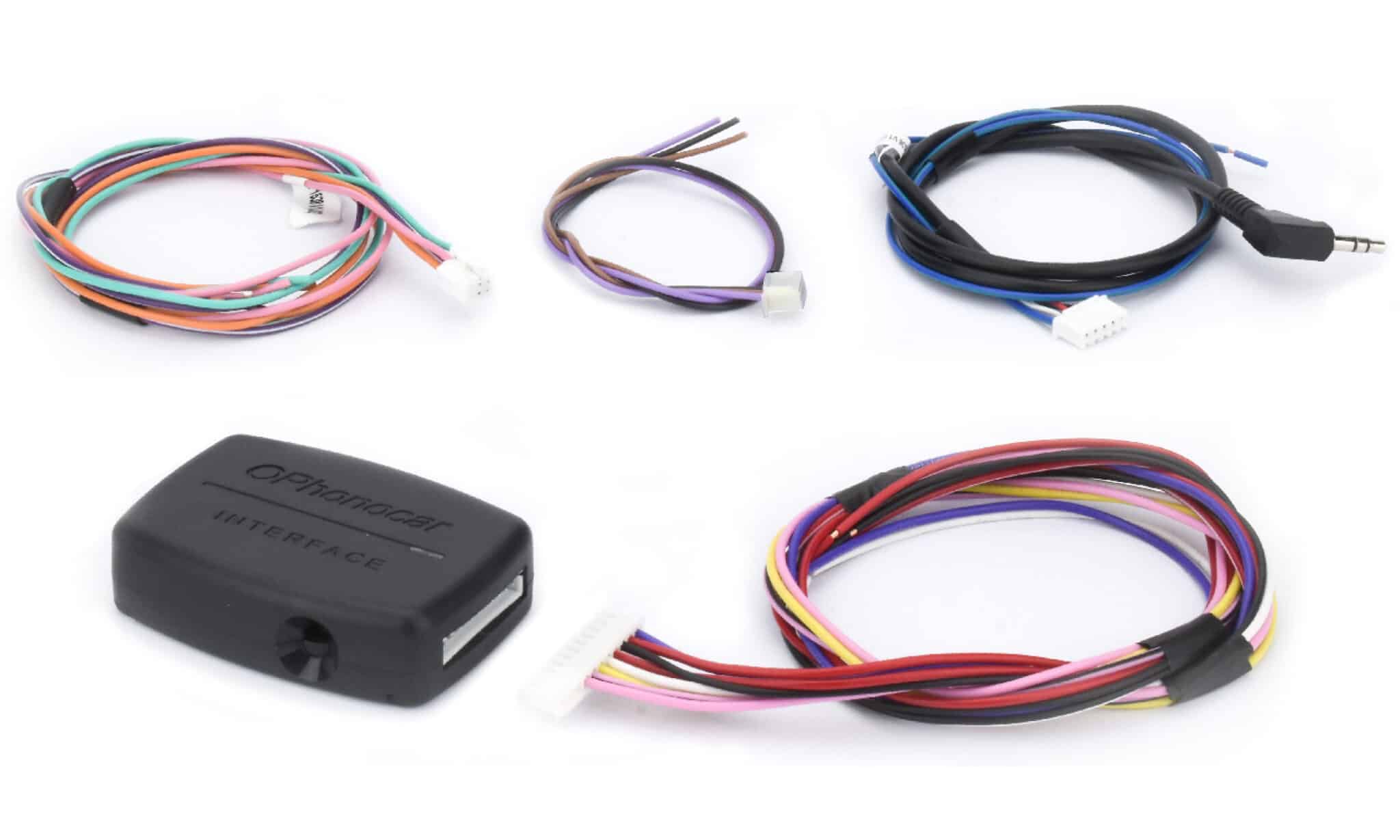 Kit composto da interfaccia e cavi adattattori autoradio.