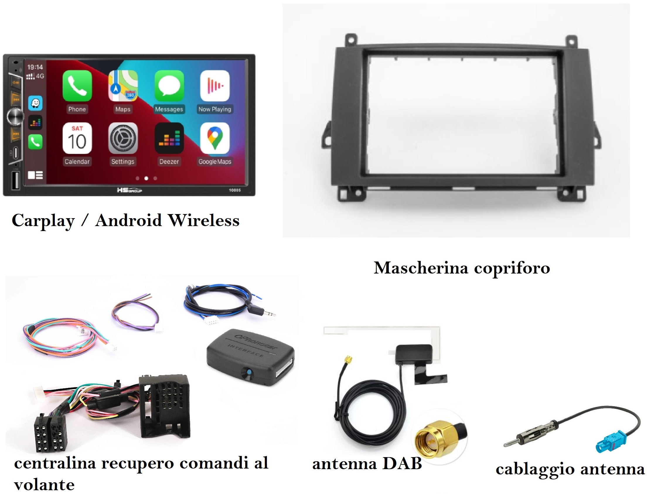 Sistema multimediale Android con Apple CarPlay ed Android Auto wireless.