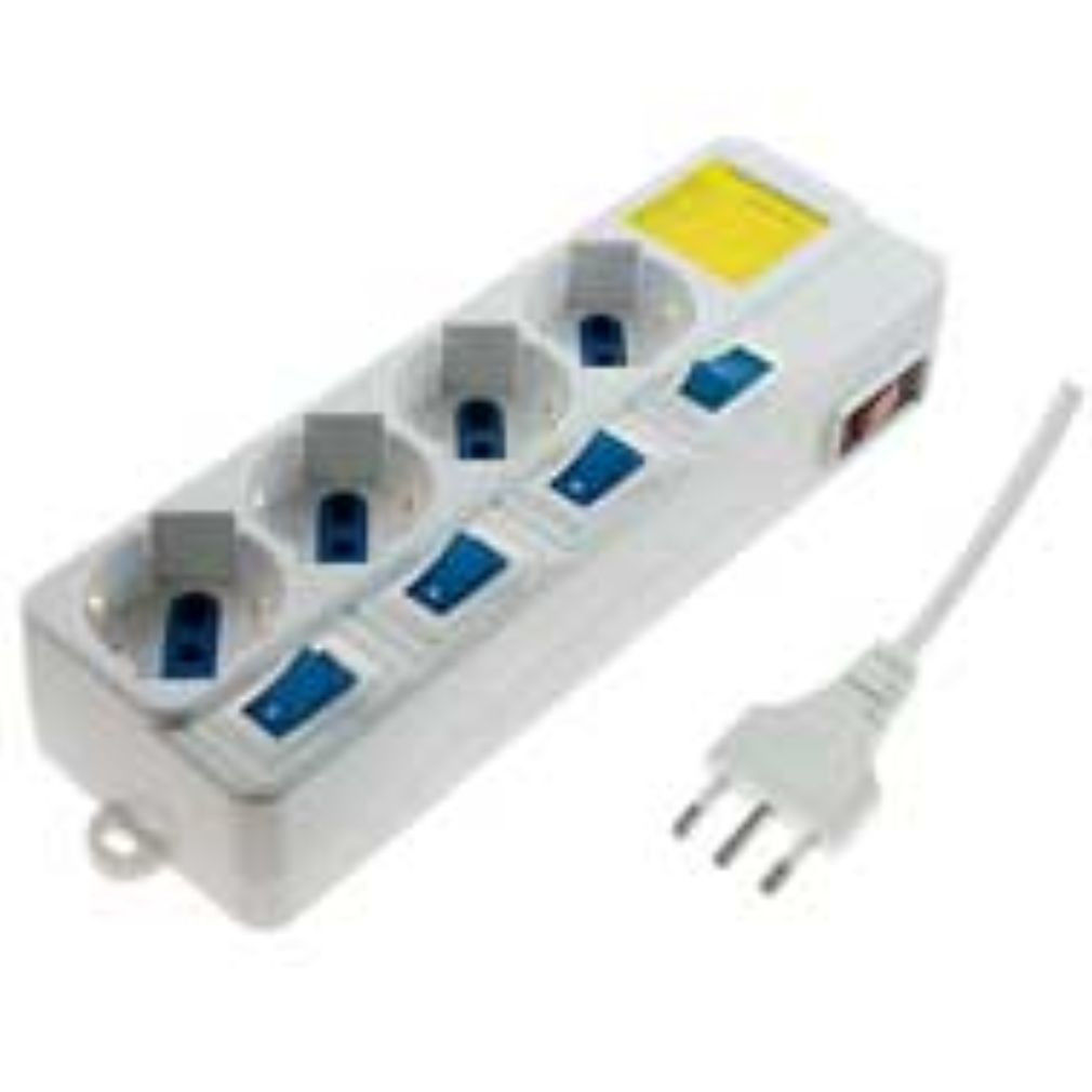 CIABATTA MULTIPRESA ELETTRICA 4 PRESE SCHUKO 4 INTERRUTTORI + 1 MASTER 16 A