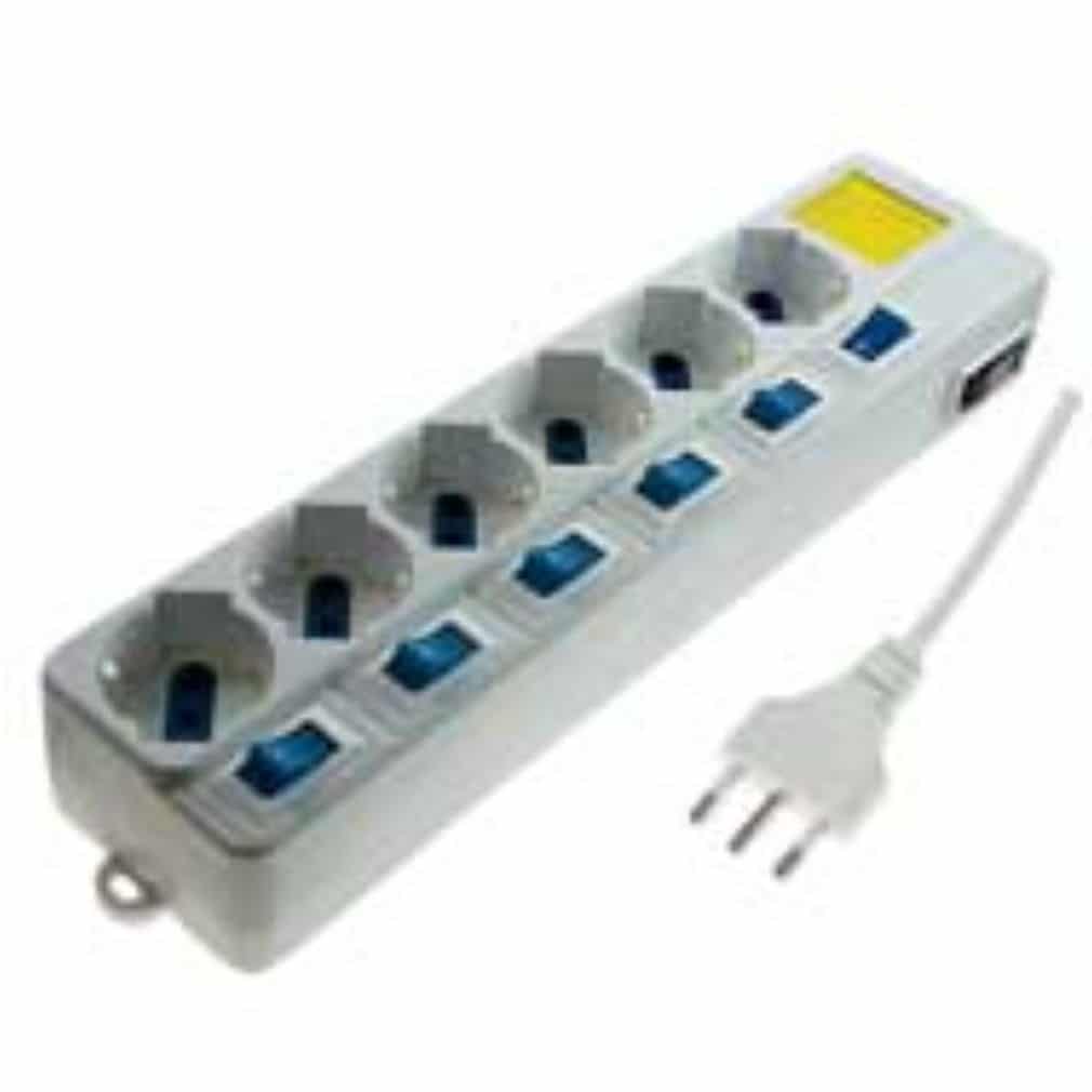 CIABATTA MULTIPRESA ELETTRICA 6 PRESE SCHUKO 6 INTERRUTTORI + 1 MASTER 16 A MARCA LIFE