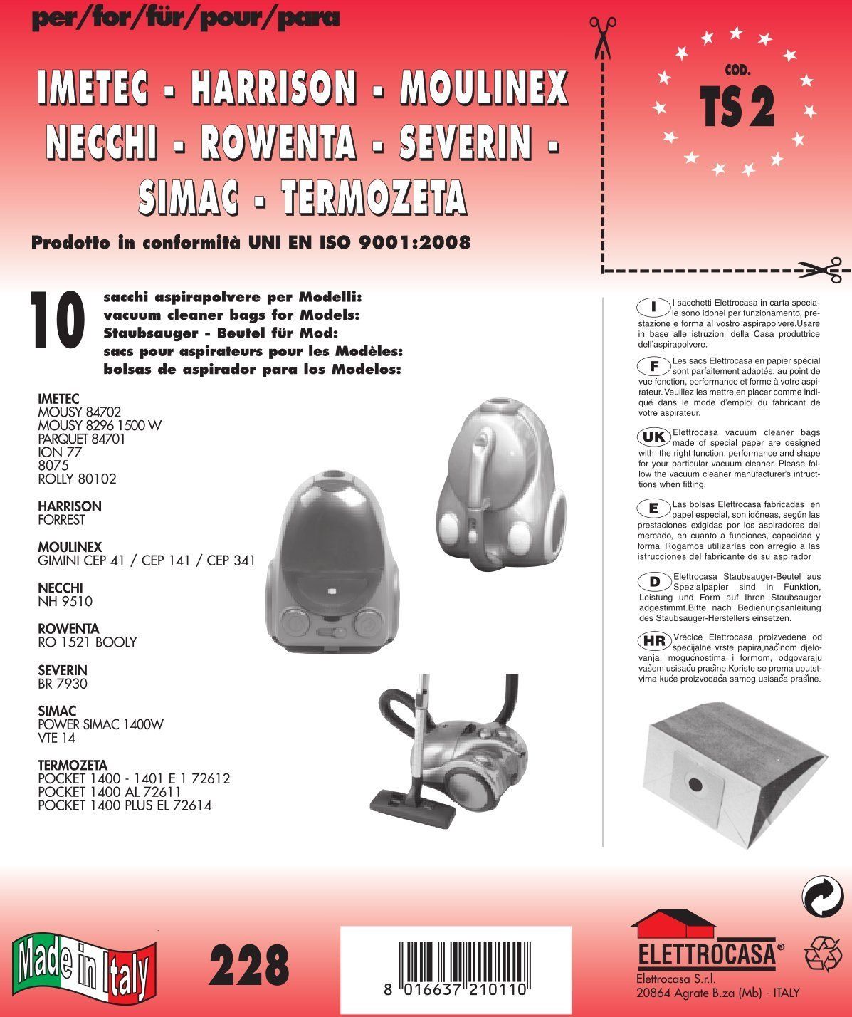 DISPONIBILI IN DEPOSITO I SACCHETTI DI RICAMBIO PER ALTRE MARCHE E MODELLO DI ASPIRAPOLVERE