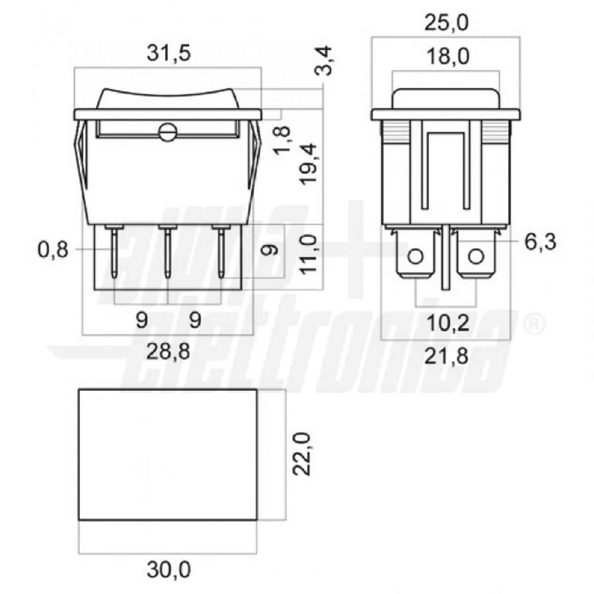 Deviatore – Nero – 2P – DPCO – (ON)/OFF/(ON) – 15A@250V – 6 term. faston 6,3