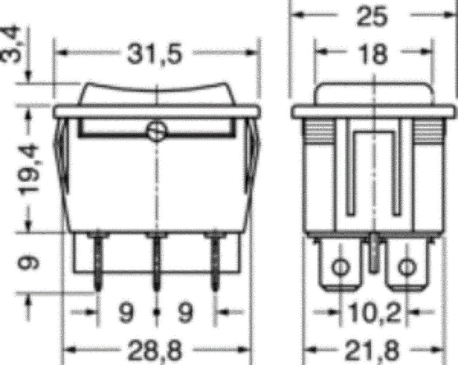 Deviatore bipolare con autoritorno instabile con 3 posizioni