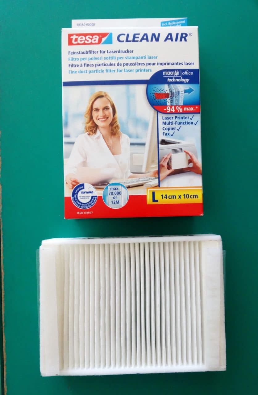 Tesa Clean Air® viene fissato semplicemente alla griglia di aerazione di stampanti , fax e fotocopiatrici con l’aiuto di un sistema VELCRO® autoadesivo di alta qualità.Le performance della stampante e la qualità di stampa non ne vengono influenzate.Il filtro per polveri sottili tesa Clean Air® è composto da uno speciale tessuto non tessuto a tre strati che filtra persino le particelle di polvere più sottili. L’innovativo tessuto non tessuto ad alto rendimento è estremamente efficace e può essere smaltito con i rifiuti domestici.