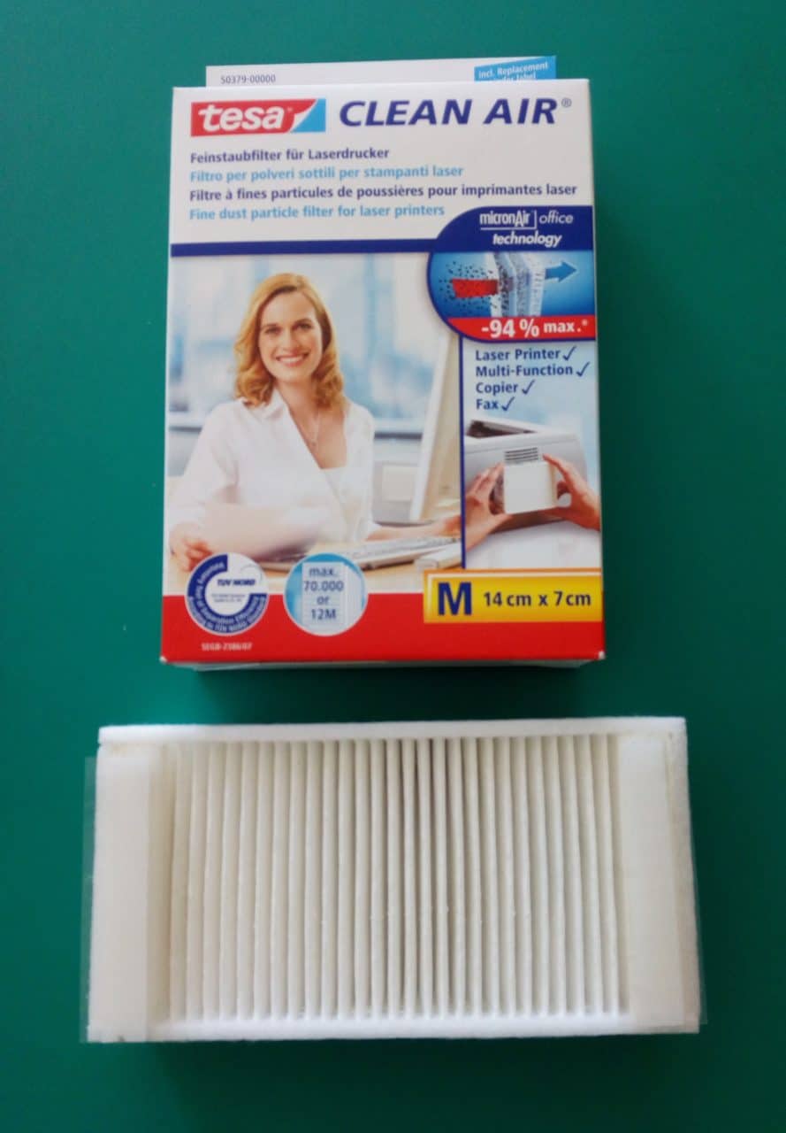 Tesa Clean Air® viene fissato semplicemente alla griglia di aerazione di stampanti , fax e fotocopiatrici con l’aiuto di un sistema VELCRO® autoadesivo di alta qualità.Le performance della stampante e la qualità di stampa non ne vengono influenzate.Il filtro per polveri sottili tesa Clean Air® è composto da uno speciale tessuto non tessuto a tre strati che filtra persino le particelle di polvere più sottili. L’innovativo tessuto non tessuto ad alto rendimento è estremamente efficace e può essere smaltito con i rifiuti domestici.