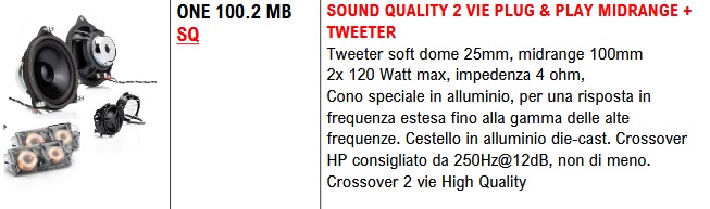 ** Frequenze di crossover consigliate per il midrange: passa-alto 250 Hz – 500 Hz, 24 – 12 dB/Oct