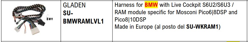 • Cablaggi WK20 + SU-BMWRAMLVL1