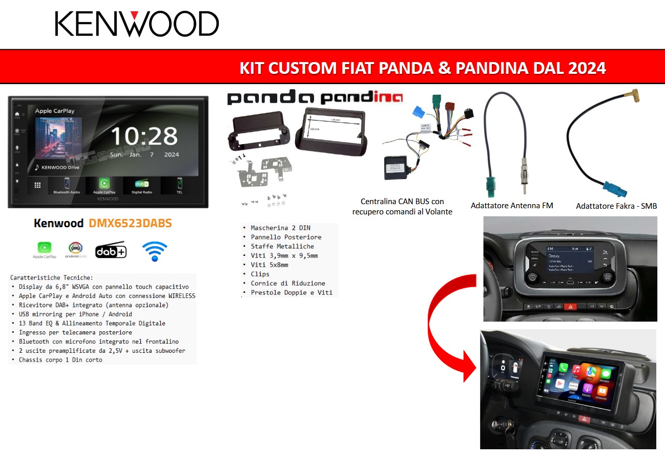 Kit Fiat Panda dal 2024 con Radio ORIGINALE e DISPLAY da 5″.
