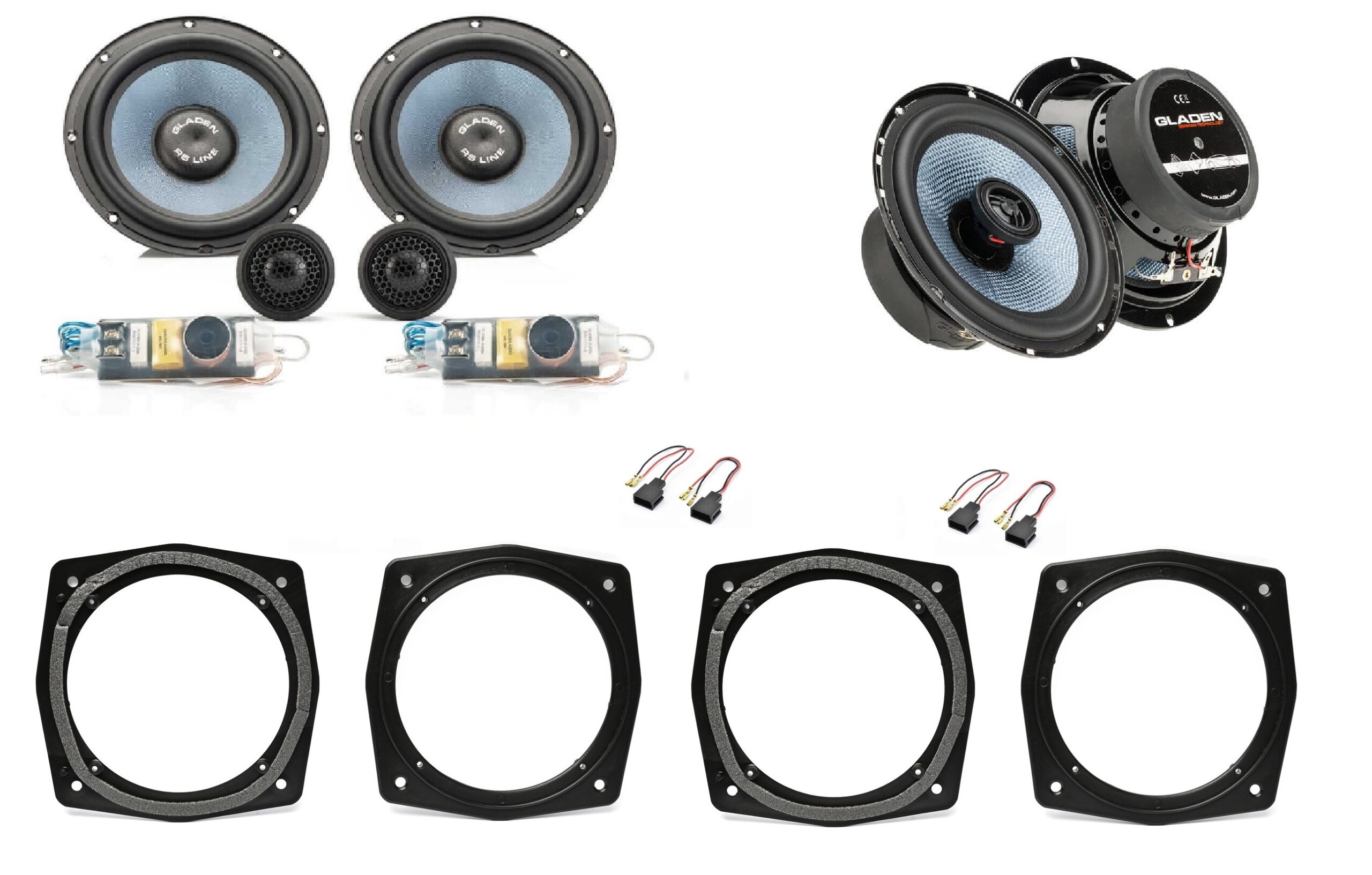 Efficiente sistema di diffusori a 2 vie con crossover passivo salvaspazio. Il Gladen RS-165 Speed-G2, con la sua elevata efficienza, è un partner ottimale per piccoli amplificatori o per le classiche autoradio.