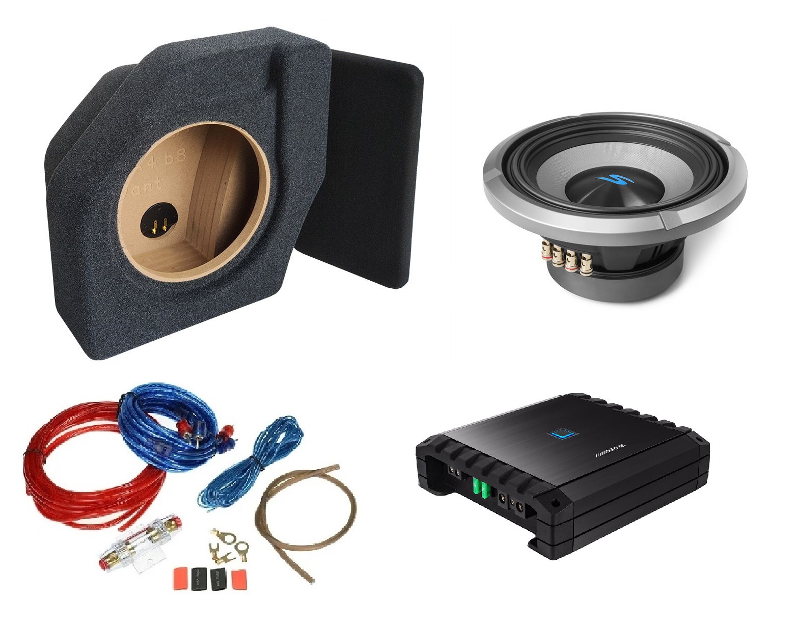 Kit Subwoofer + amplificatore + cablaggi + cassa chiusa subwoofer per