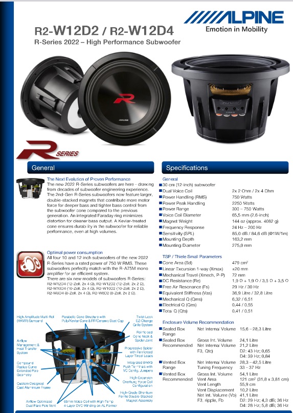 Fin dalla piattaforma Type R, la famiglia di sistemi audio Alpine R-Series è stata conosciuta per la sua incredibile potenza di uscita e le sue prestazioni affidabili. Ora Alpine introduce la prossima generazione di prestazioni sonore con i subwoofer di seconda generazione della R-Series.