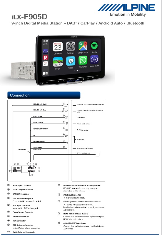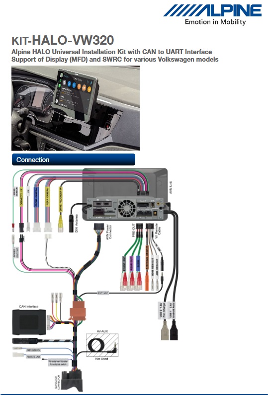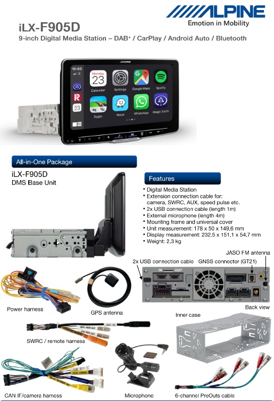 - Cablaggio di collegamento Alpine specifico per il veicolo con connettore Power-Quadlock