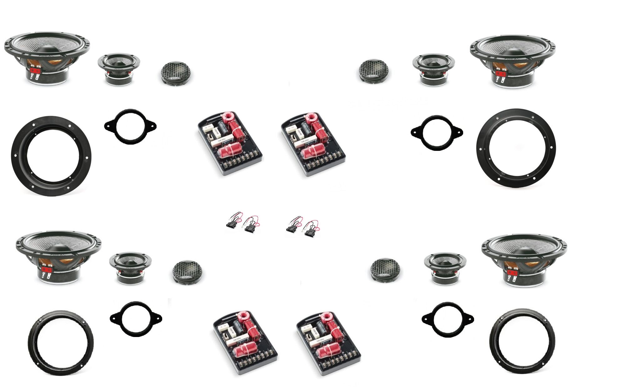 Kit altoparlanti + supporti per l’installazione + cavetti adattatori altoparlanti anteriori e posteriori