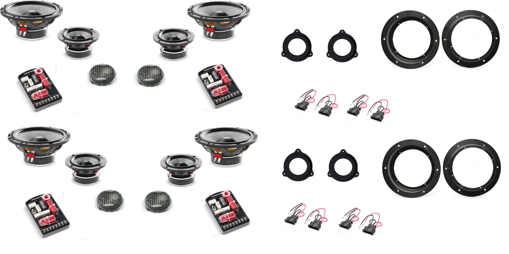 Kit altoparlanti + supporti per l’installazione + cavetti adattatori altoparlanti anteriori e posteriori