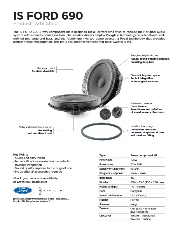 150×230 mm - Filter : Woofer: Integrated / Tweeter: Online