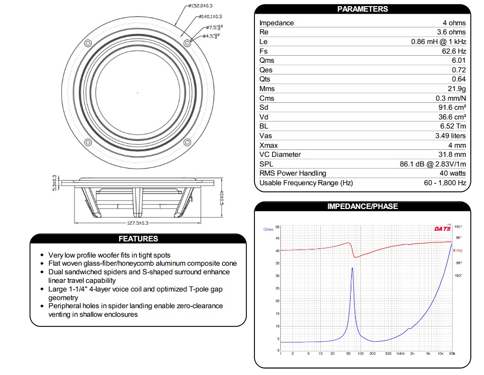Resonant Frequency (Fs)62.6 Hz