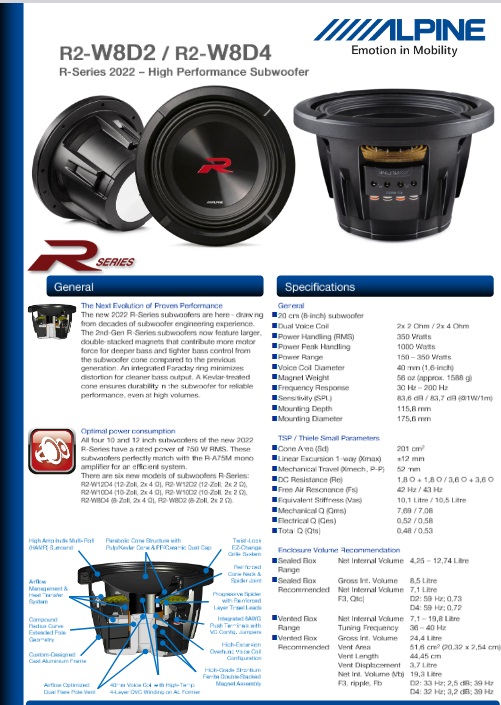 Fin dalla piattaforma Type R, la famiglia di sistemi audio Alpine R-Series è stata conosciuta per la sua incredibile potenza di uscita e le sue prestazioni affidabili. Ora Alpine introduce la prossima generazione di prestazioni sonore con i subwoofer di seconda generazione della R-Series.