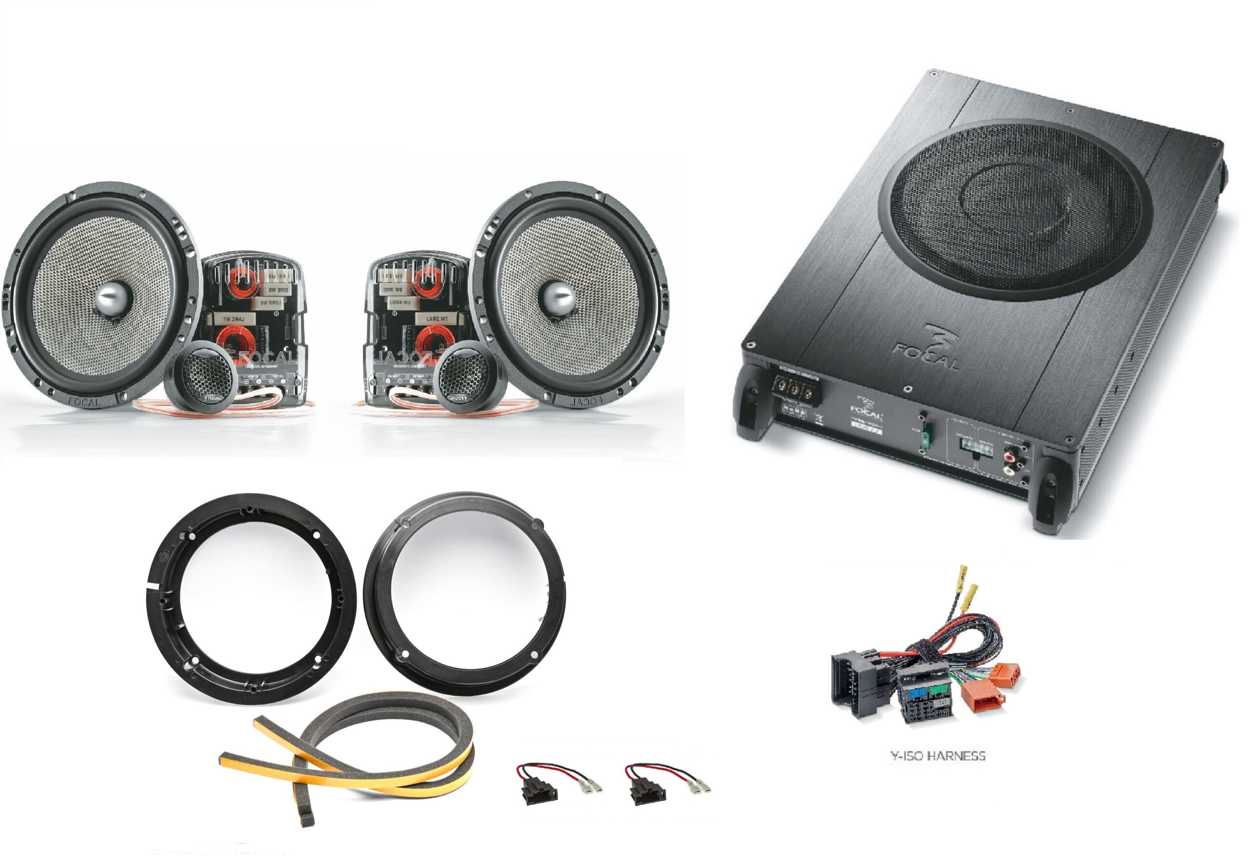 Il subwoofer ISUB ACTIVE 2.1 è la soluzione perfetta per completare qualsiasi impianto audio di fabbrica aggiungendo bassi potenti (260 W) e amplificando i canali anteriori del veicolo (2.1). Si collega alle uscite HP dell’autoradio tramite il cavo Plug & Play fornito da Focal per migliorare realmente l’esperienza sonora senza occupare spazio nell’abitacolo o nel bagagliaio.