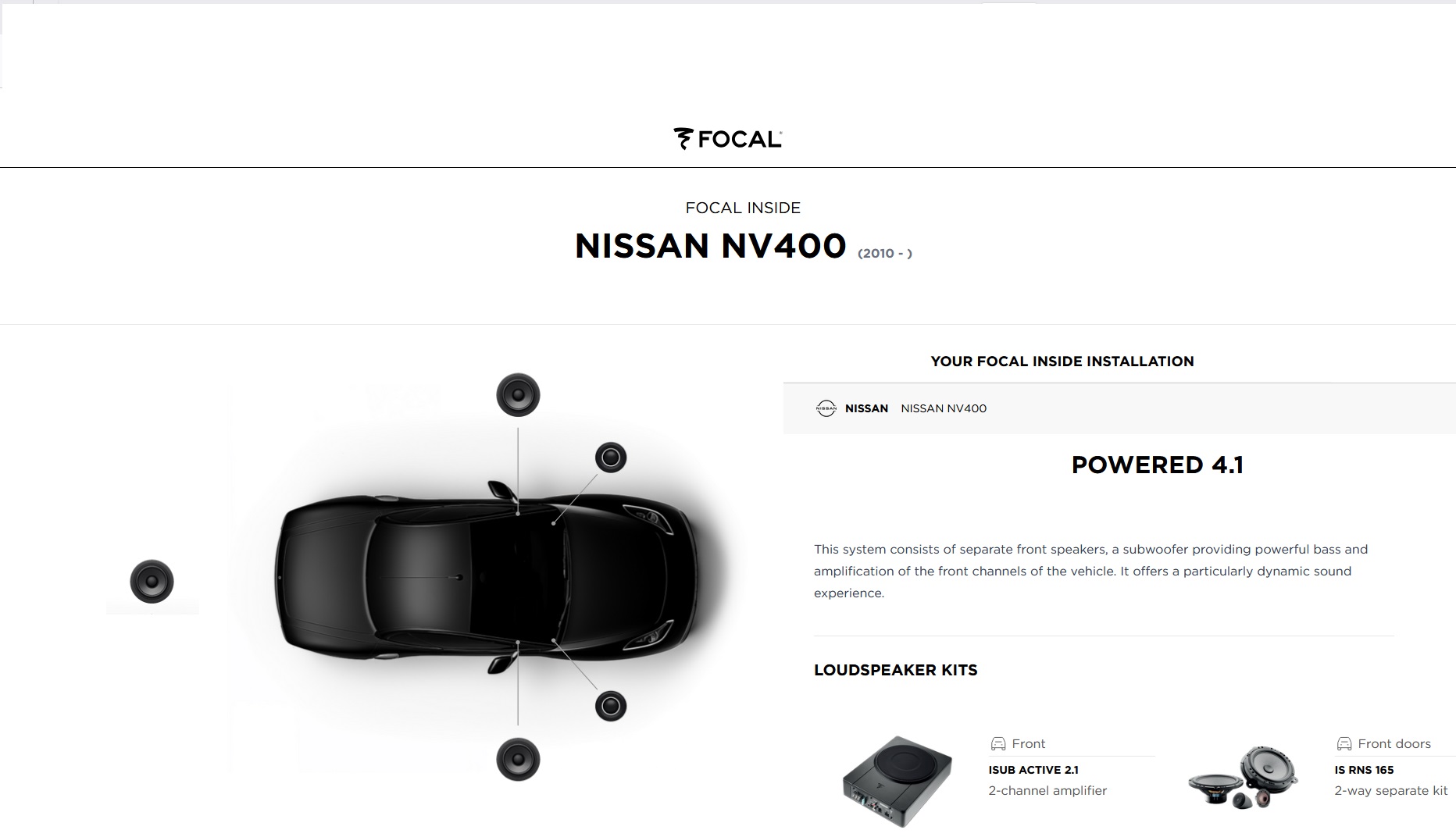 Kit Focal Inside Powered 4.1 per Nissan NV400 serie dal 2010