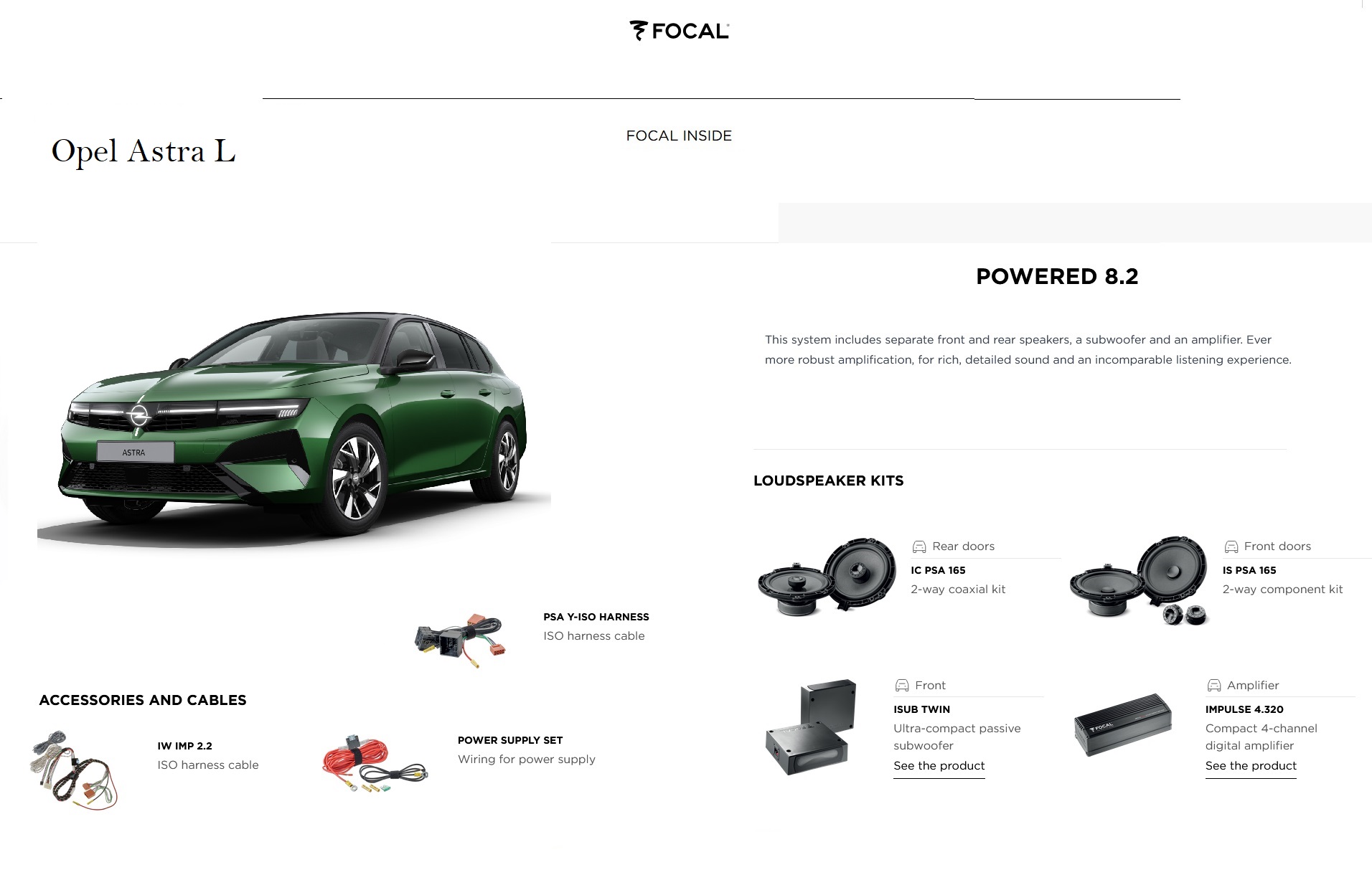 • Progettato per abbinarsi perfettamente all’amplificatore Impulse 4.320 e ai prodotti Plug & Play Focal Inside®