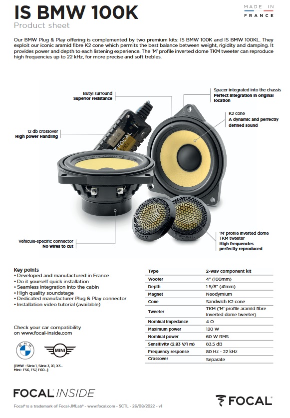 La nostra offerta Plug & Play per BMW è completata da due kit premium: IS BMW 100K e IS BMW 100KL. Sfruttano il nostro iconico cono in fibra aramidica K2 che consente il miglior equilibrio tra peso, rigidità e smorzamento. Offre potenza e profondità ad ogni esperienza di ascolto. Il tweeter TKM a cupola rovesciata con profilo a “M” è in grado di riprodurre frequenze alte fino a 22 kHz, per alti più precisi e morbidi.