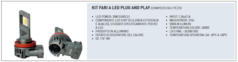 - Componente Led Chip di elevata efficenza e qualità, studiato specificatamente per kit Led