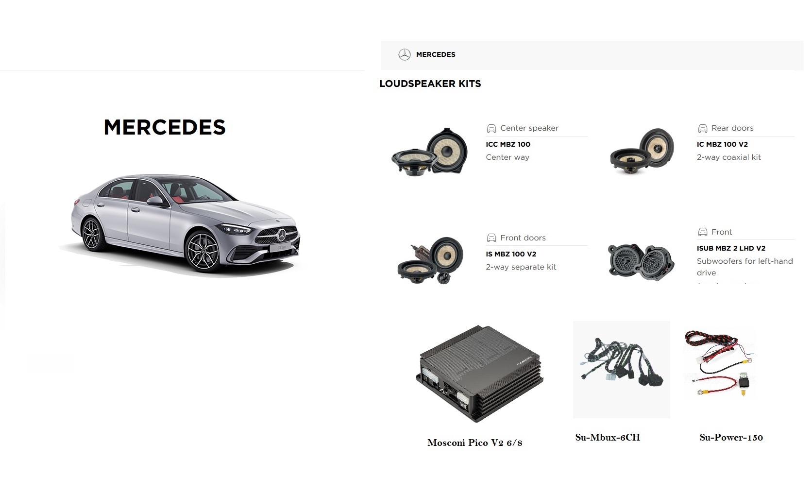 Universal harness for Mercedes with MBUX (NTG 6 and 7) without sound system and with Advancend/Midline sound system, to a MOSCONI PICO 6 |8 DSP amplifier.
