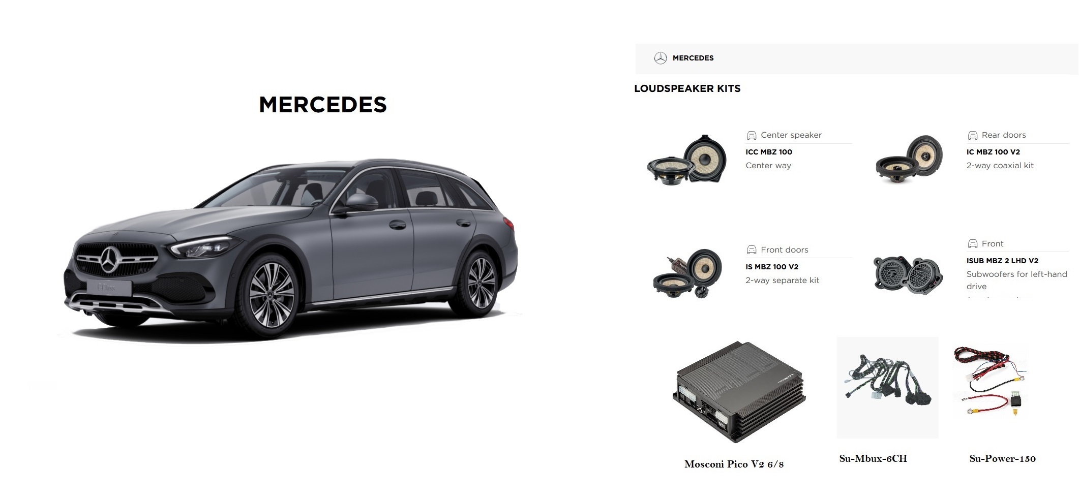 Universal harness for Mercedes with MBUX (NTG 6 and 7) without sound system and with Advancend/Midline sound system, to a MOSCONI PICO 6 |8 DSP amplifier.