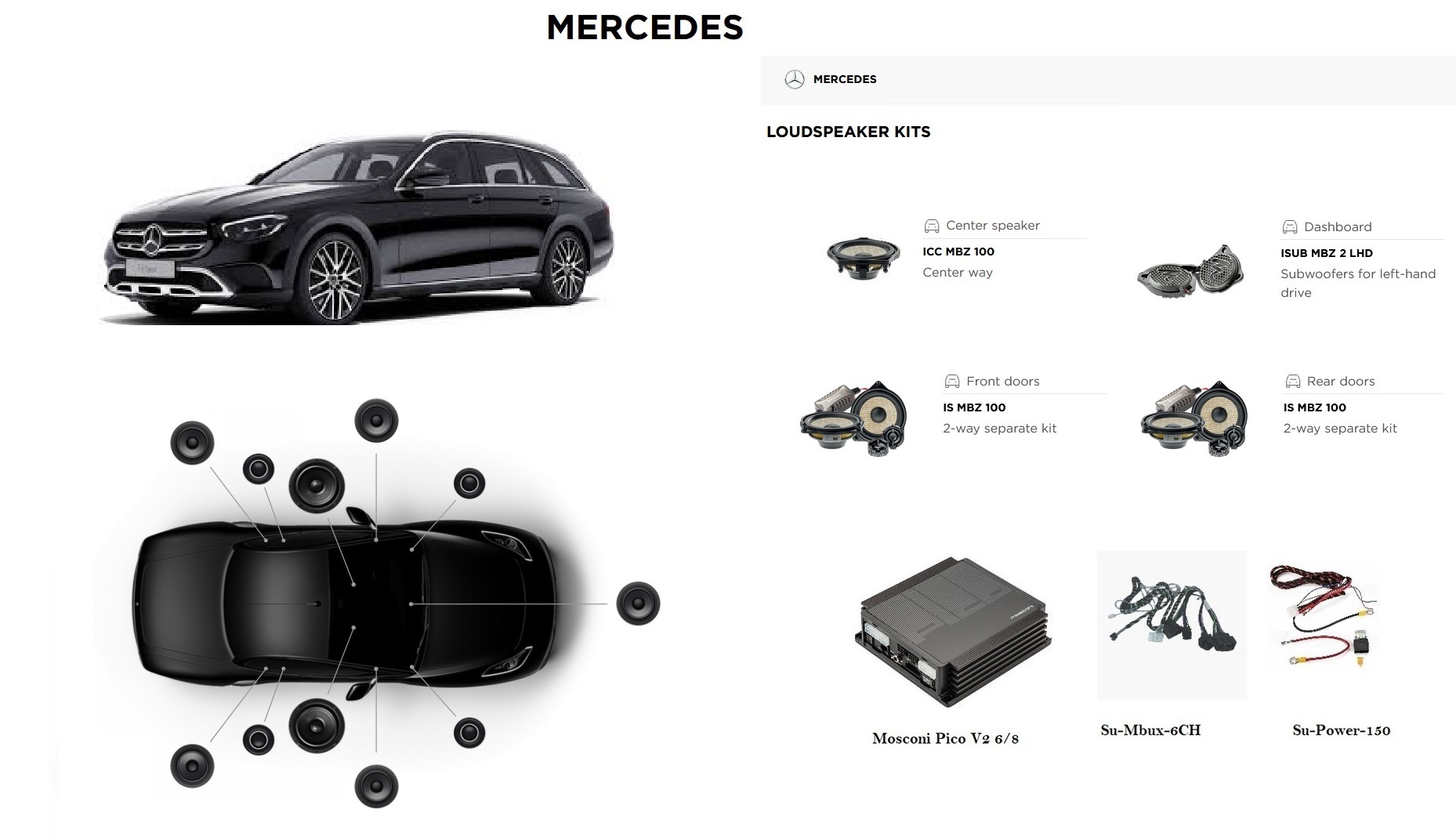 Universal harness for Mercedes with MBUX (NTG 6 and 7) without sound system and with Advancend/Midline sound system, to a MOSCONI PICO 6 |8 DSP amplifier.