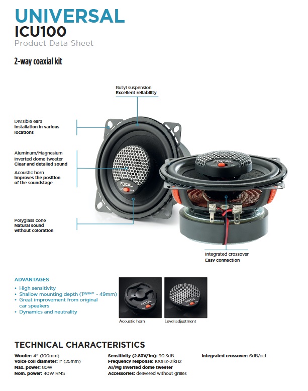 Tutte le tecnologie focal che il kit integra, tra cui l’iconica membrana K2, le consentono di avere un livello sonoro elevato, per prestazioni senza pari considerando le sue dimensioni