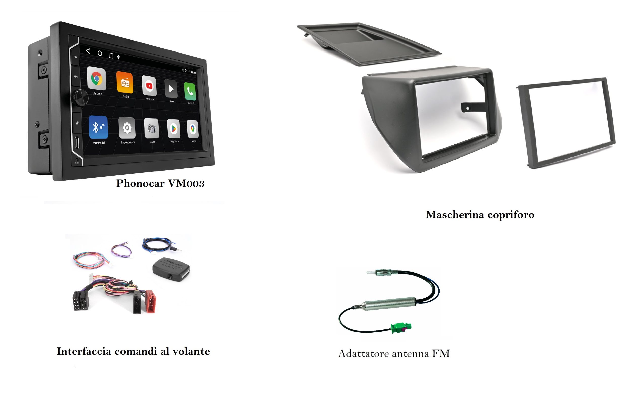 - 1 porta USB Type A posteriore per ricevitore DAB+ o libera instalazione multimediale max 128 Gb
