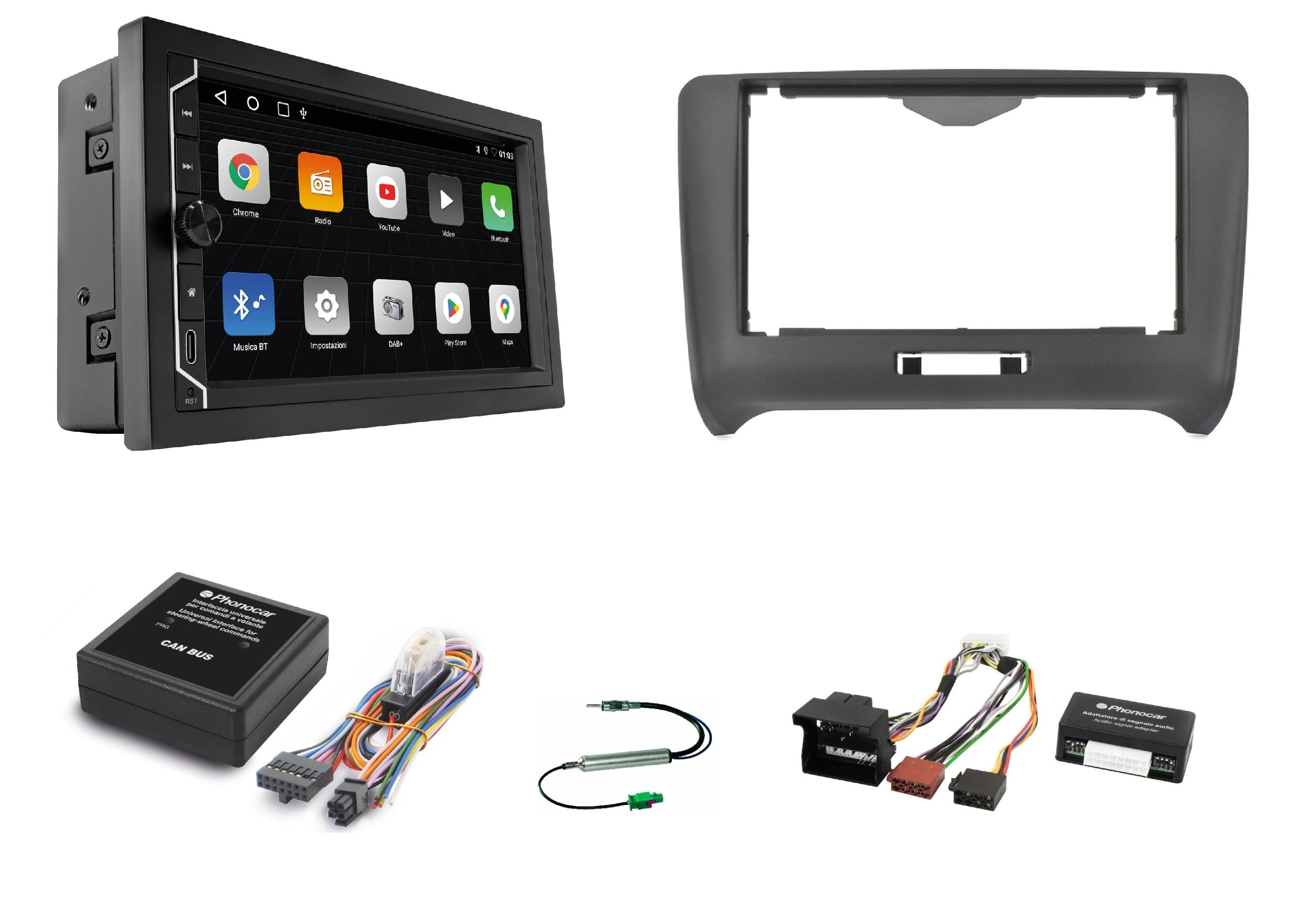 - 1 porta USB Type A posteriore per ricevitore DAB+ o libera instalazione multimediale max 128 Gb