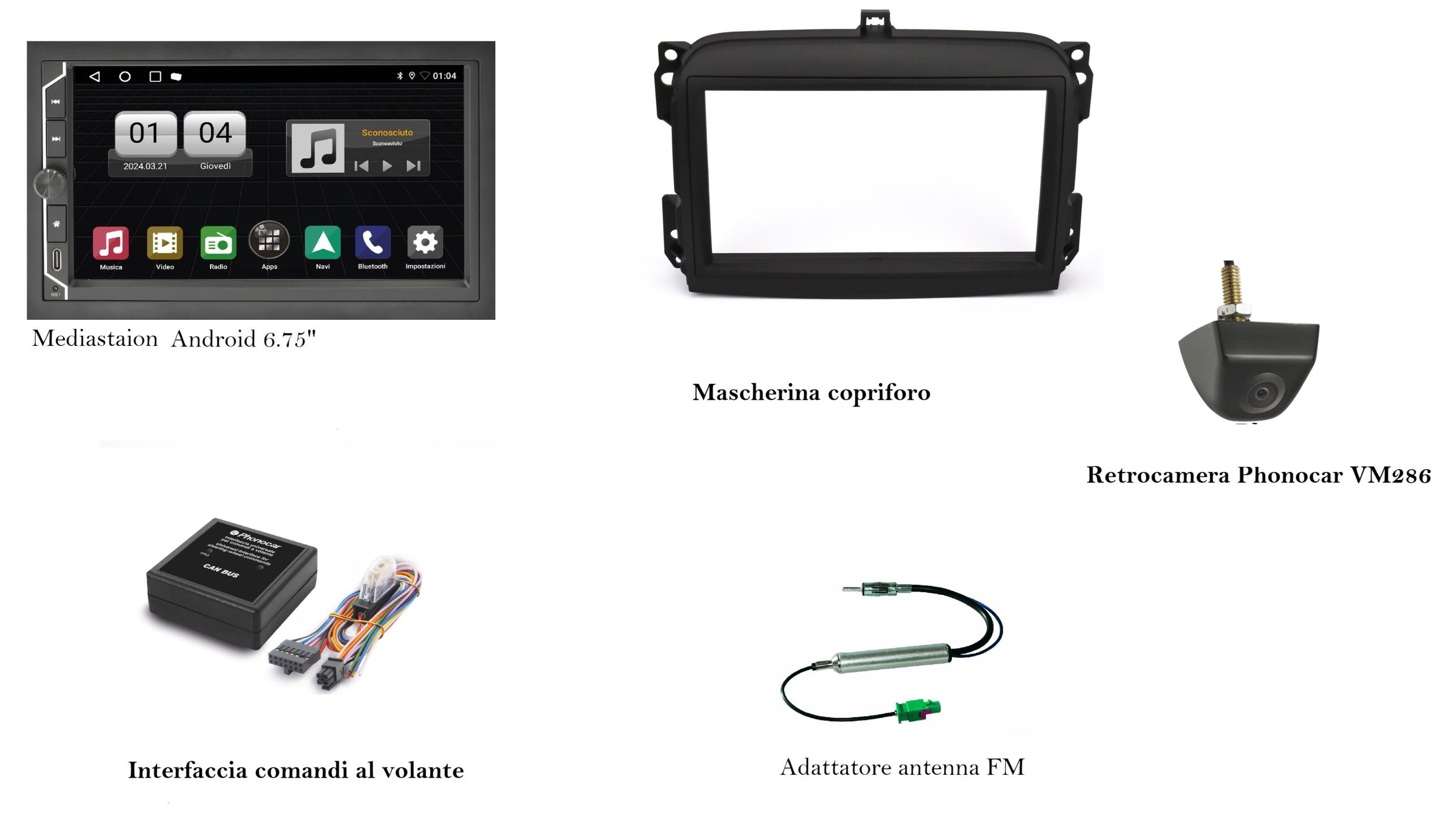 SISTEMA MULTIMEDIALE ANDROID con MONITOR TFT/LCD 6.75” TOUCH SCREEN CAPACITIVO.