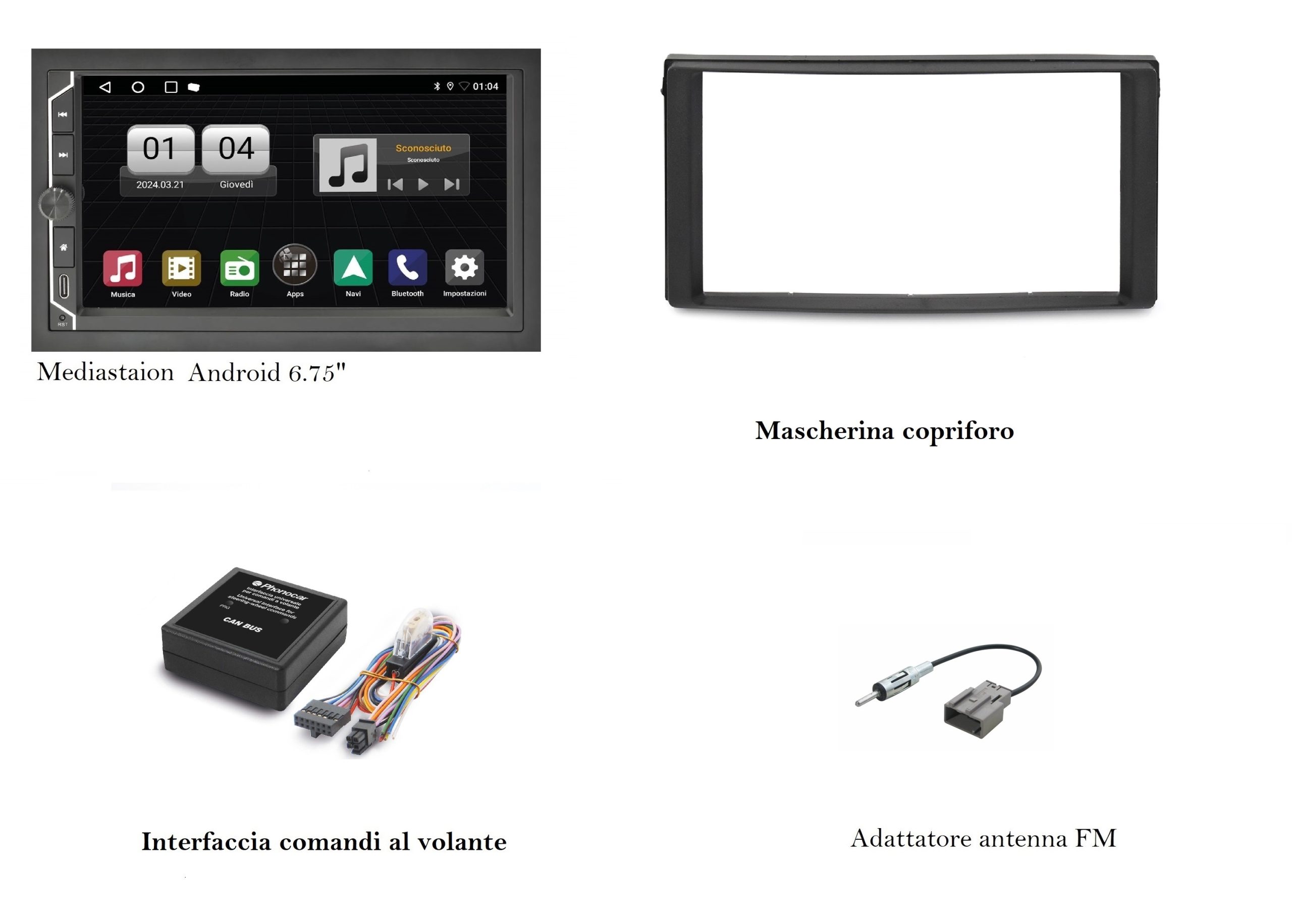 SISTEMA MULTIMEDIALE ANDROID con MONITOR TFT/LCD 6.75” TOUCH SCREEN CAPACITIVO.