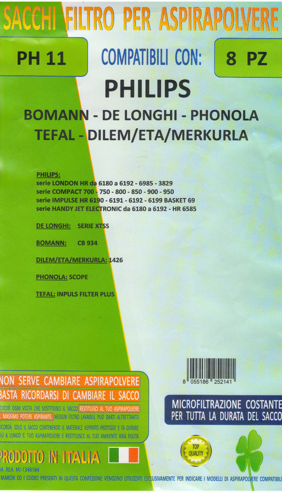 CONFEZIONE 8 PEZZI SACCHETTO ASPIRAPOLVERE DI RICAMBIO COMPATIBILE CON: