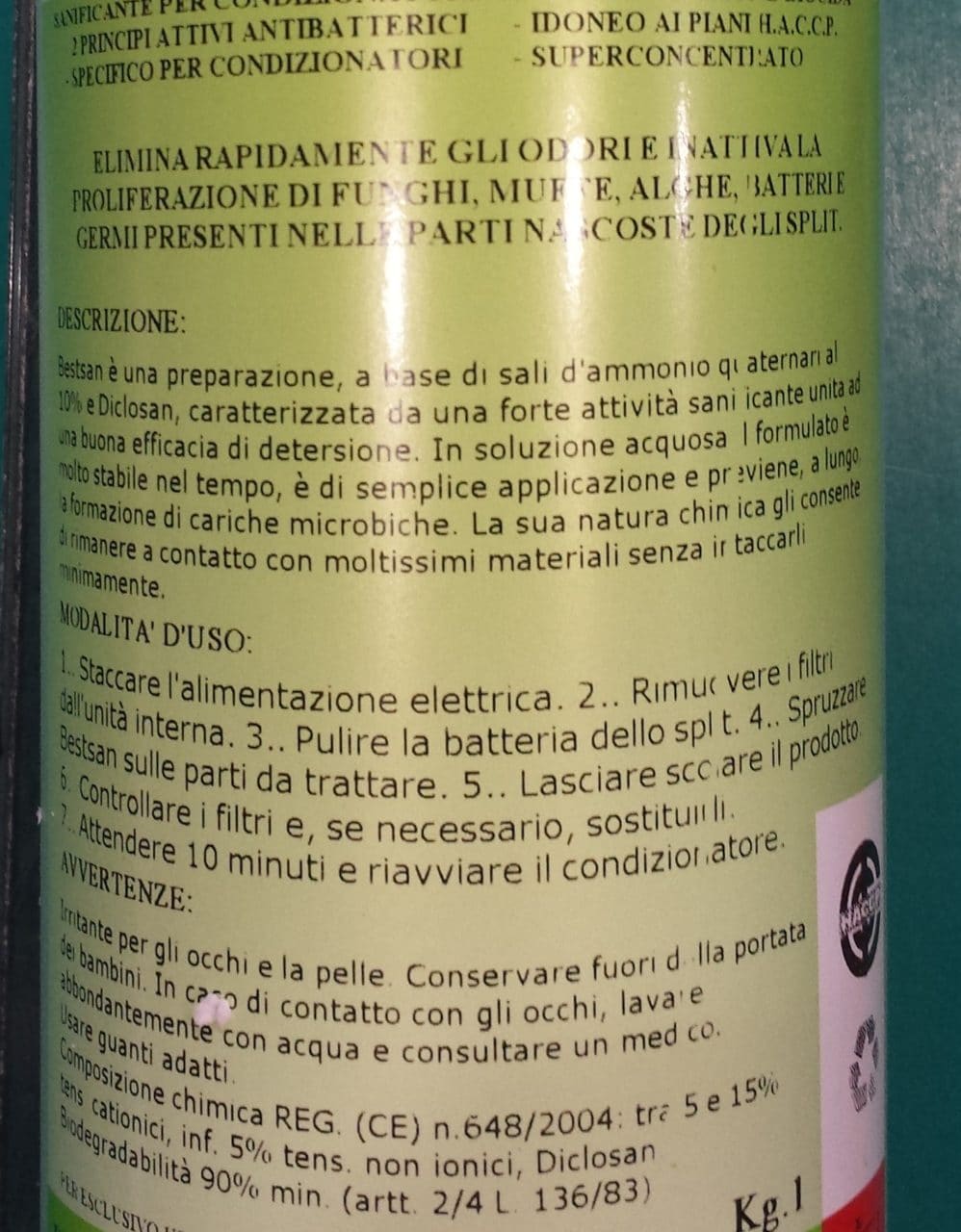 Elimina rapidamente gli odori e inattiva la proliferazione di funghi, muffe, alghe , batteri e germi presenti nelle parti nascoste degli split.