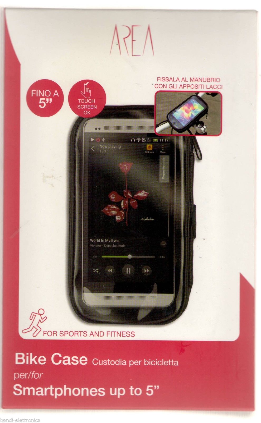 Il supporto da bici per Smartphone fino a 5″ permette di agganciare saldamente il proprio smartphone al manubrio della propria bicicletta. La finestra touch screen protegge lo smartphone ma permette di visualizzare le notifiche o le chiamate e poter leggere messaggi o rispondere alle telefonate senza togliere il device dalla propria custodia.
