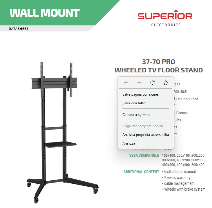 Recensisci per primo “Supporto TV PRO da pavimento con ruote 37-70 pollici”